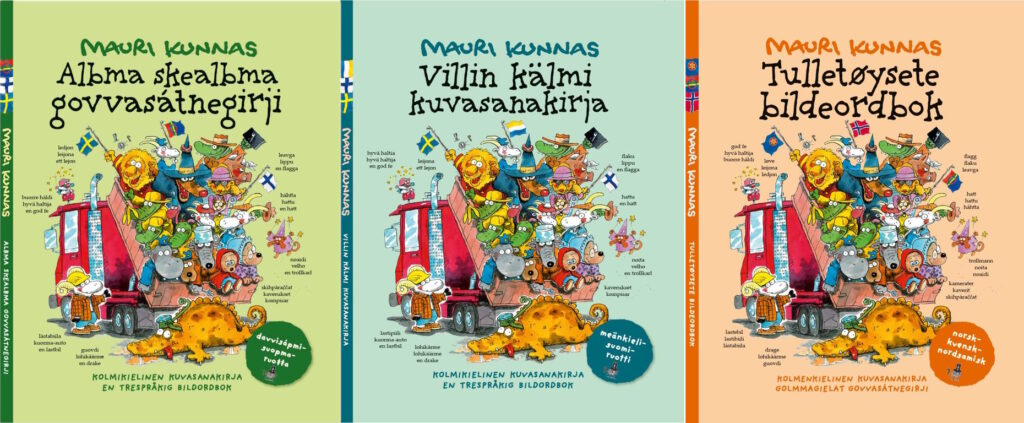 Mauri Kunnas kovesänikirje ”Hullunkurinen kuvasanakirja” lii tääl jurgâlum kuulmâ tavekuávlu ucceeblovokielân: tavesämikielân, meänkielân já kveenikielân. Kovesänikirje jyehi jurgâlusâst láá kevttum kulmâ kielâ, já maaŋgâkielâliih kirjeh láá ohtsis kulmâ: ”Albma Skealbma govvasátnegirji” (tavesämikielâ–suomâkielâ–ruotâkielâ), ”Villin kälmi kuvasanakirja” (meänkielâ–suomâkielâ–ruotâkielâ) sehe ”Tulletøysete bildeordbok” (tárukielâ–kveenikielâ–tavesämikielâ).